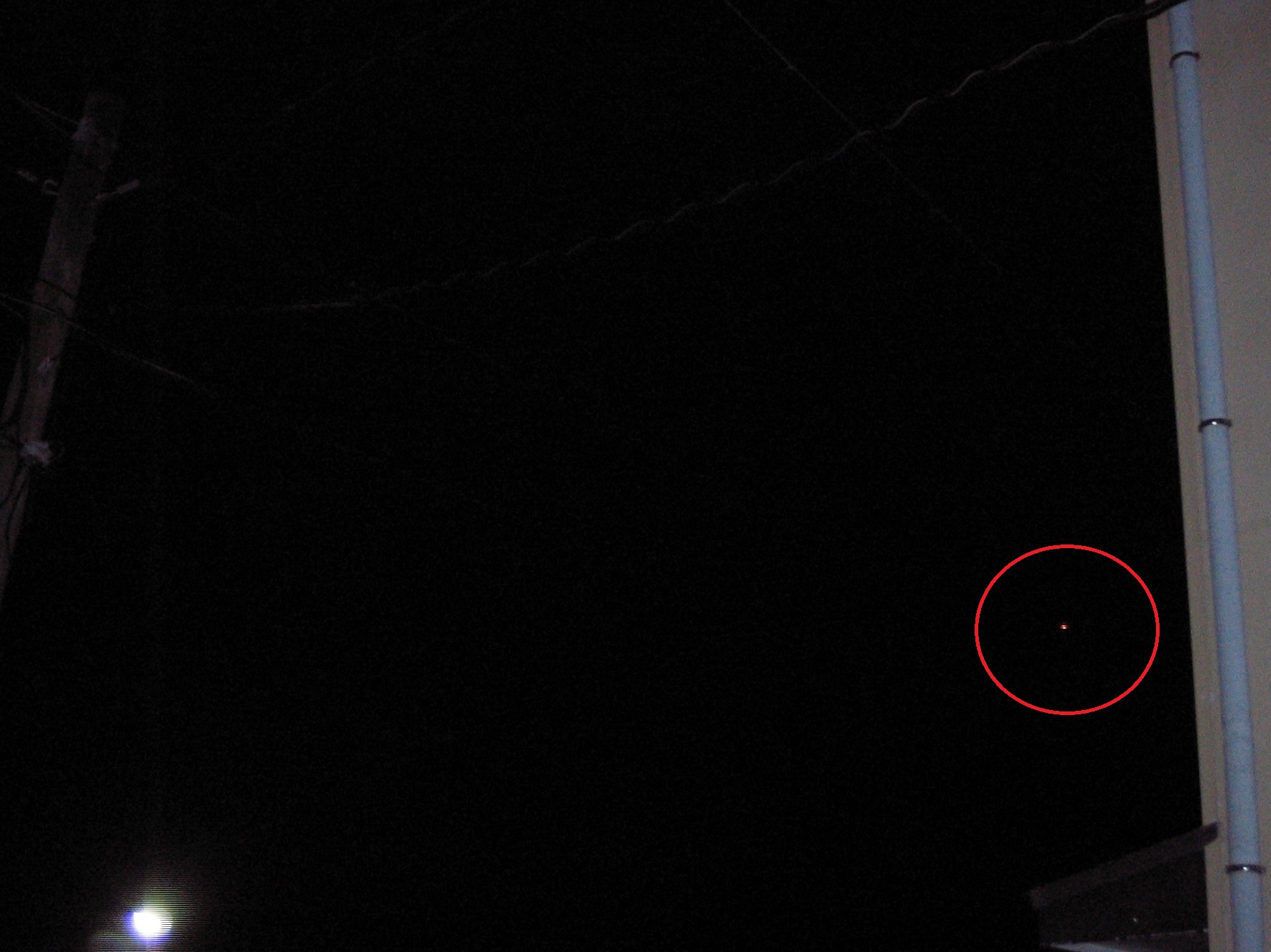五島列島のUFO出没地にて、日没後に滞空するUFOが撮影された!(通称名:スペースファイター号)画像にブレは無いかの確認のため画像の色を反転させてみたところ、UFOの表面から謎のエネルギーが出ていることがわかった!
